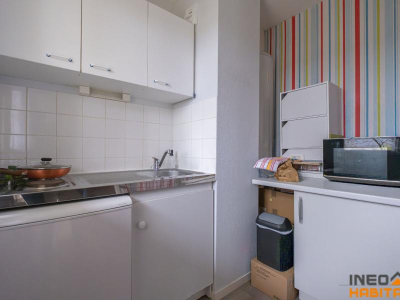 Une entrée avec placard, un séjour avec balcon exposé OUEST, une cuisine (frigo, plaque et hotte), une chambre ainsi qu'une salle de bains avec WC séparé.