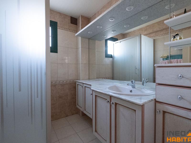 Maison T5 édifiée en 1978 ayant bénéficiée d'une extension en 2010 pour un total de 160m² habitable comprenant, une entrée desservant un séjour avec cheminée insert exposé SUD et espace bureau, une salle à manger avec cuisine ouverte aménagée et équipée (ilot centrale, chauffe plat, four, plaque, hotte, lave-vaisselle, frigo et micro-onde) le tout donnant plein OUEST pour un total à vivre de plus de 86m² . Une arrière cuisine avec meuble et évier ainsi qu'un WC.