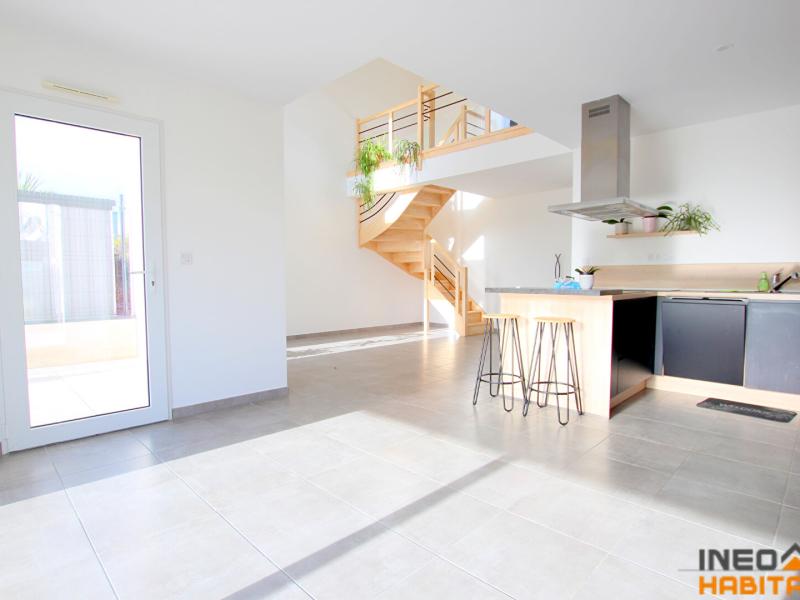Au rez-de-chaussée, vous trouverez une entrée, un spacieux salon-séjour lumineux, une cuisine ouverte entièrement aménagée et équipée, une chambre avec dressing et salle d'eau attenante, un WC séparé et un cellier.