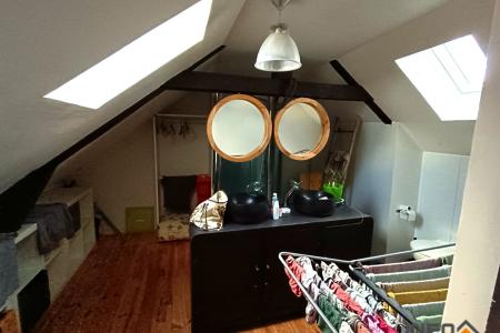 L'étage accueille deux belles chambres ainsi qu'une salle de bains comprenant baignoire et douche, accompagnée de WC séparés. Le deuxième étage est entièrement dédié à une suite parentale, offrant un espace intime avec salle d'eau privative et toilettes. Chaque niveau est conçu pour apporter confort, intimité et fonctionnalité.