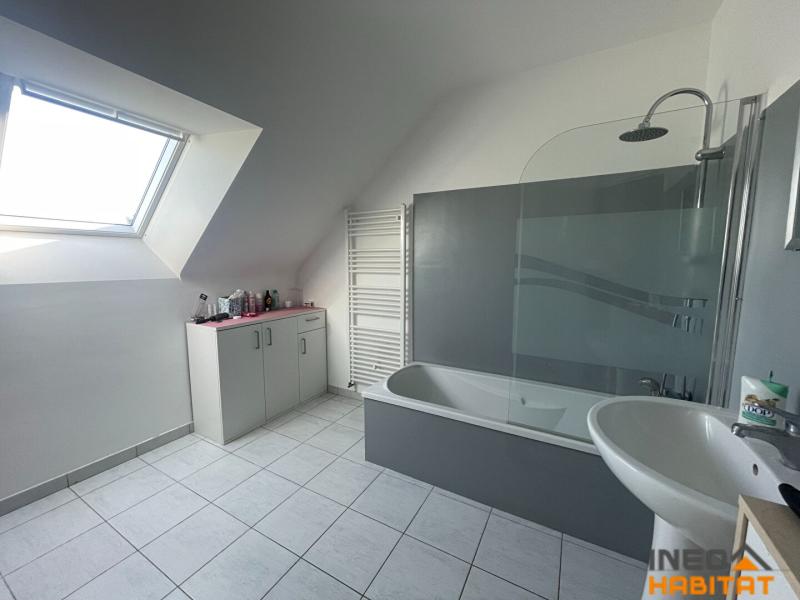 Une jolie maison de 2015 construite en bio-briques et couverte en ardoises d'une surface d'environ 100m² habitable avec une surface utile de 111m², comprenant :