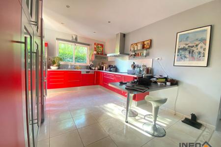 La maison se compose d'une belle entrée avec placard donnant sur un salon séjour de plus de 40 m² spacieux et lumineux avec triple exposition , idéal pour profiter du soleil tout au long de la journée. Vous trouverez également une cuisine ouverte aménagée et équipée (four, plaque de cuisson, hotte, lave vaisselle), un desservant 1 chambre de plus de 13 m² avec placard, un WC séparé, une salle d'eau avec douche, double vasque. Cette partie est adaptée personne à mobilité réduite.