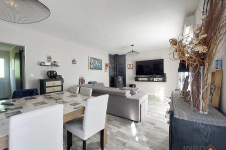 La maison se compose d'une entrée, une cuisine aménagée/équipée, une salle à manger avec poêle à granulés, 3 chambres, salle d'eau, WC séparé. Buanderie.
