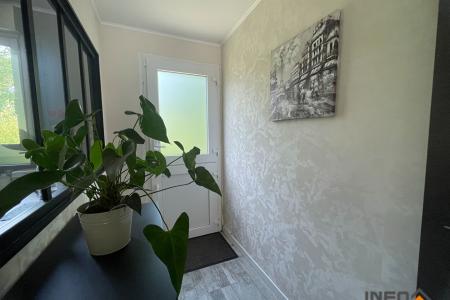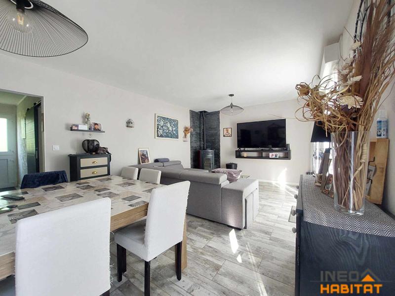 La maison se compose d'une entrée, une cuisine aménagée/équipée, une salle à manger avec poêle à granulés, 3 chambres, salle d'eau, WC séparé. Buanderie.