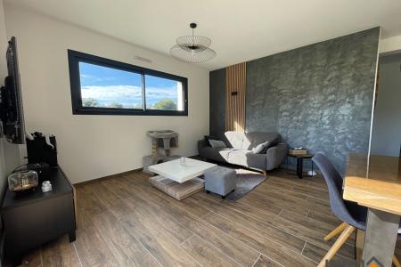 Une superbe maison contemporaine de 2022, dans un environnement calme, comprenant au rez-de-chaussée : Une entrée, WC, une pièce de vie lumineuse, une cuisine aménagée et équipée, un cellier.