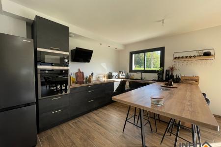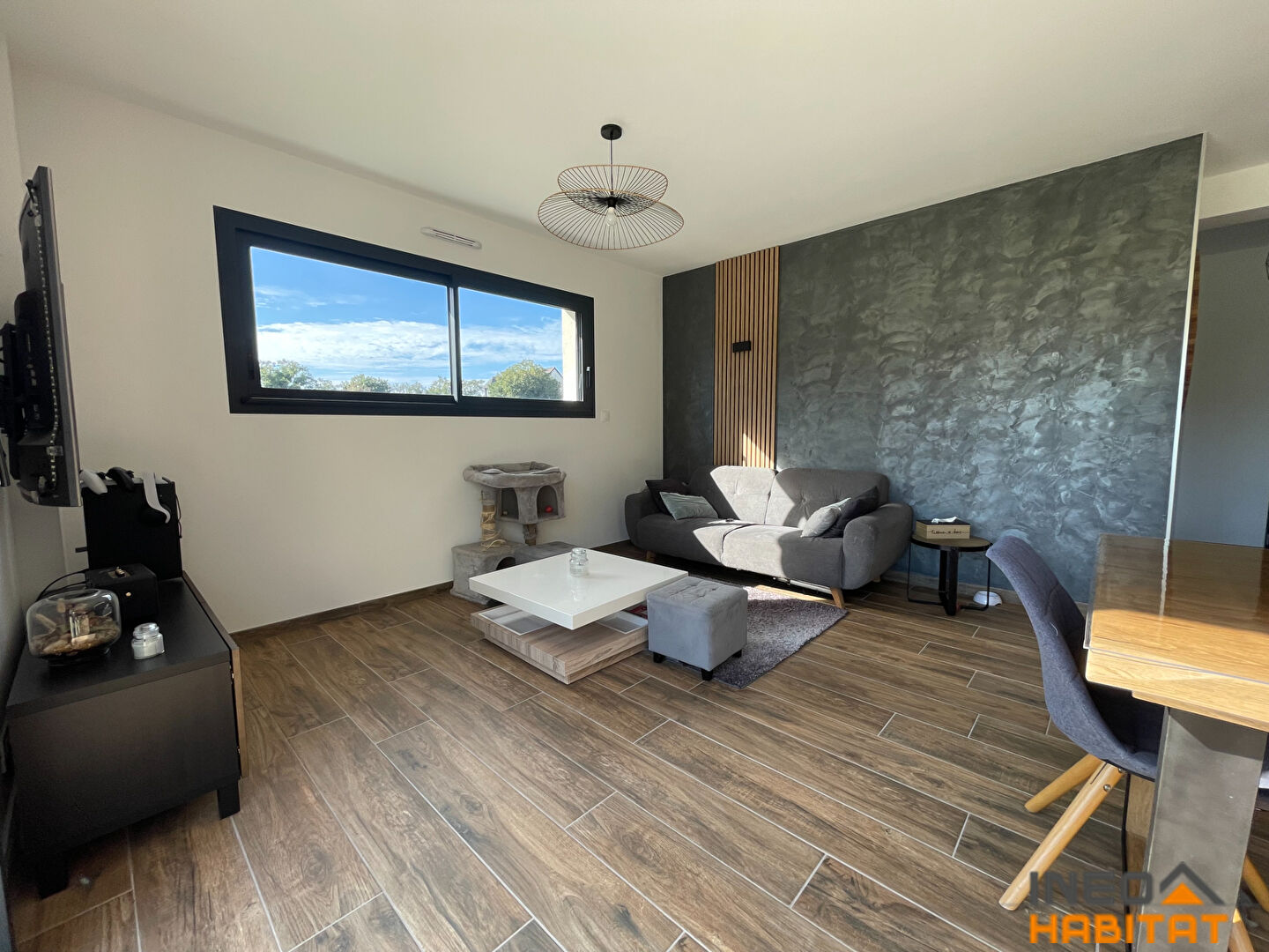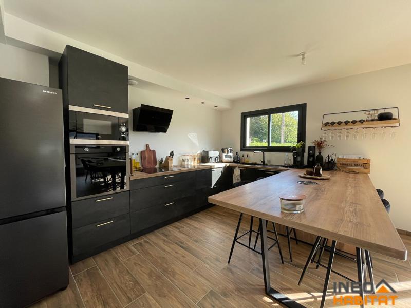 Une superbe maison contemporaine de 2022, dans un environnement calme, comprenant au rez-de-chaussée : Une entrée, WC, une pièce de vie lumineuse, une cuisine aménagée et équipée, un cellier.