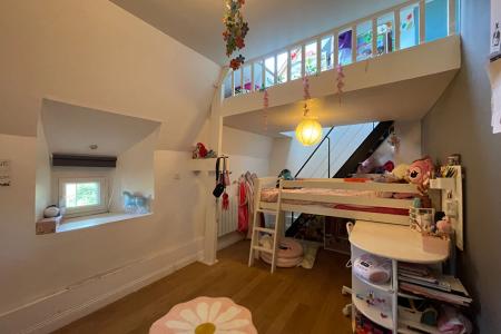 A l'étage : un dégagement avec dressing desservant : 3 chambres, une salle de jeux, un bureau, une salle de bains avec un WC.