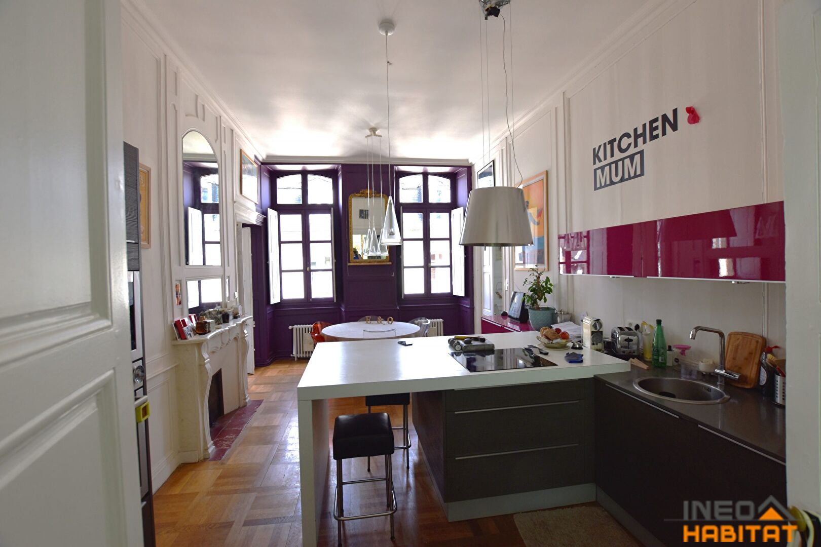 RENNES Centre ville- Dans une copropriété XVIIIème en bon état, en plein coeur de ville, cet appartement a conservé ses éléments de charme tels que cheminées, parquets et moulures, tout en offrant un confort contemporain. L'appartement de 112m² comprend: entrée, coursive vitrée sur cour, salon, salle à manger/cuisine aménagée et équipée, 2 chambres, bureau, dressing, grande salle de bains avec WC. Cave en sous-sol. Accès séparé par l'escalier de service et par cette entrée, accès à un cellier privatif et une petite buanderie/WC. (4.91 % honoraires TTC à la charge de l'acquéreur.)