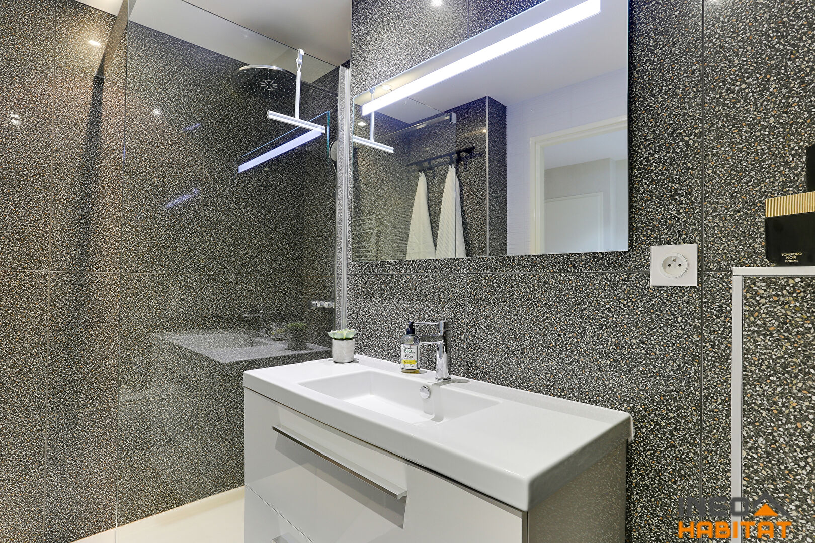 RENNES Anatole France- Dans une résidence de standing de 2015, appartement T4 de 95m² au 5eme étage avec une vue panoramique sur le canal Saint Martin et les immeubles du centre ville. Ce bien de qualité ne nécessite aucun travaux et offre: un hall qui dessert une superbe pièce de vie de 40m² avec terrasse au sud-est, une cuisine équipée, aménagée Leicht séparée par une verrière, 2 chambres, une salle d'eau, une chambre parentale et sa salle d'eau privative, un espace buanderie. Les chambres bénéficient également d'un balcon. L'immeuble bénéficie d'un ascenseur, d'un sous-sol où se trouve le double garage et la cave attachés à l'appartement. L'appartement et ses dépendances sont totalement accessibles. L'immeuble, situé à quelques minutes à pied des Lices se trouve à 160m du Métro Anatole France. Chauffage et eau chaude collective avec compteur. Amateurs de charme et de confort, ce bien vous tend les bras! (3.10 % honoraires TTC à la charge de l'acquéreur.)