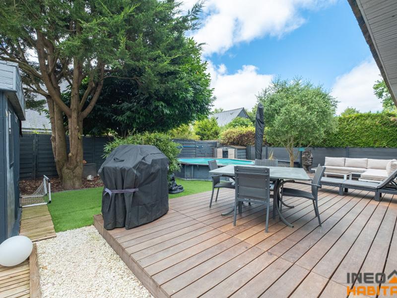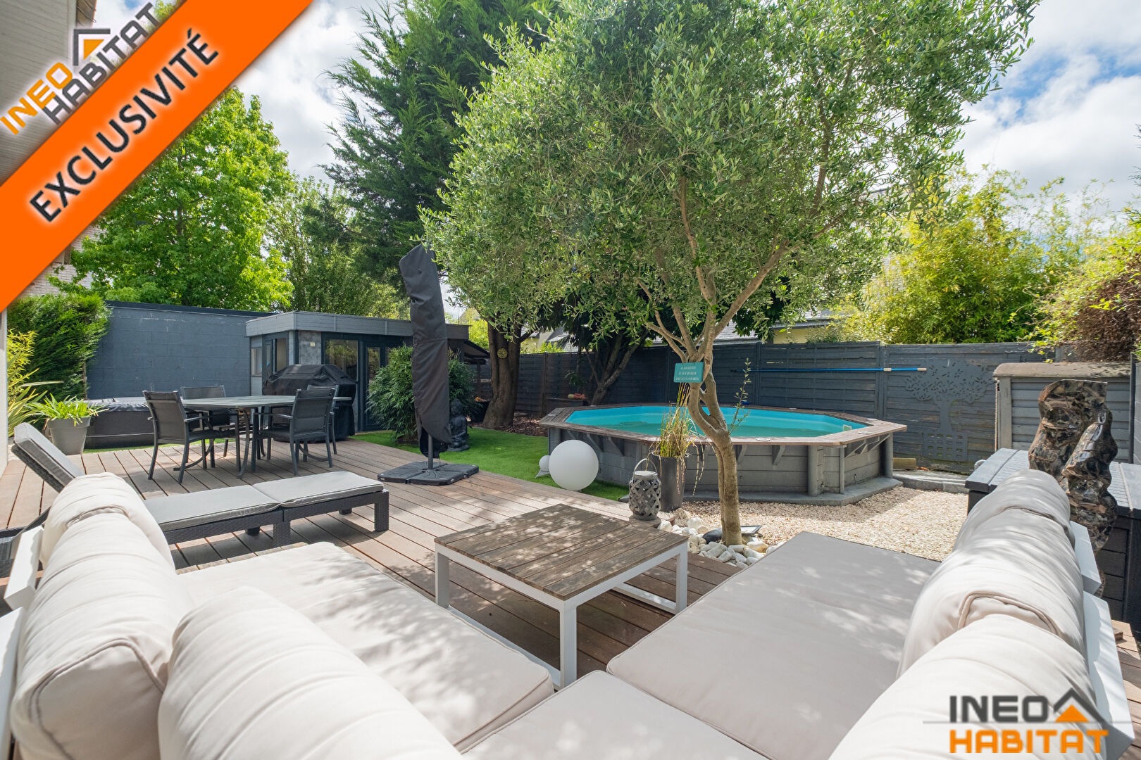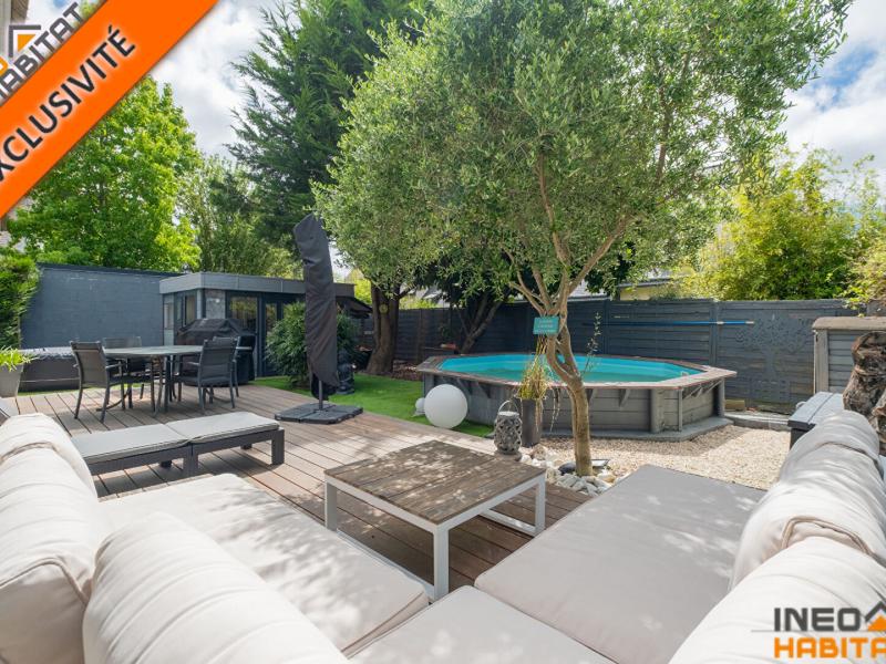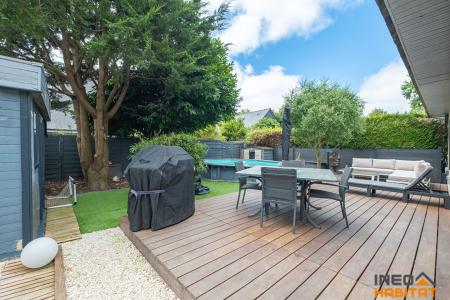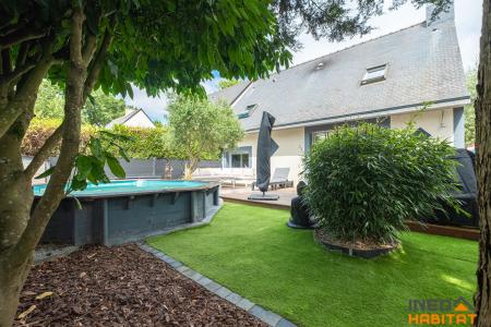 La maison dispose d'un jardin sans vis à vis avec terrasse en bois exotique entièrement neuve, piscine semi-entérée, cabanon de jardin le tout paysagé sur une parcelle de plus de 350m².