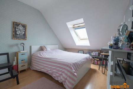 A l'étage, un dégagement desservant trois chambres dont une avec placard et une salle de bains avec WC séparé.