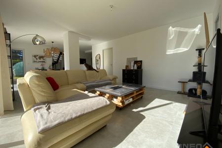 Venez découvrir cette maison familiale d'environ 135 m² habitables. Elle se compose d'une entrée lumineuse ouvrant sur une spacieuse pièce de vie exposée plein Sud, comprenant un espace salle à manger, une cuisine entièrement aménagée et équipée, ainsi qu'un salon TV convivial. Le tout sur 60 m²
