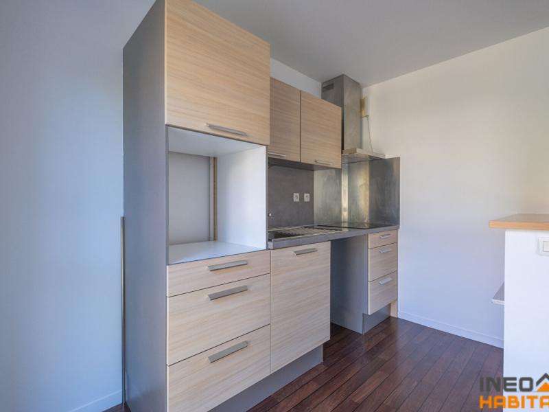 Une entrée desservant un salon/séjour avec cuisine aménagée et équipée (plaque, hotte) pour une surface total d'environ 26m². Une chambre avec placard ainsi qu'une salle d'eau et un WC séparé.