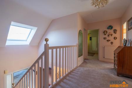 A l'étage : une mezzanine desservant trois chambres chacune avec placard, une salle de bains avec WC séparé et une salle d'eau.