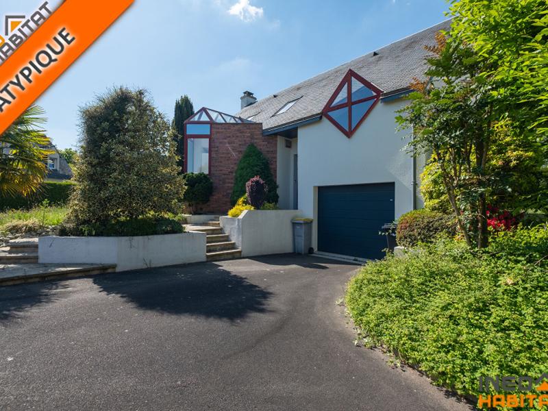 Maison T6 d'architecte située à Saint Grégoire, dans un lotissement calme, dessinée et édifiée en 1990 pour une surface d'environ 142m² agencée en demie niveaux, vous trouverez :