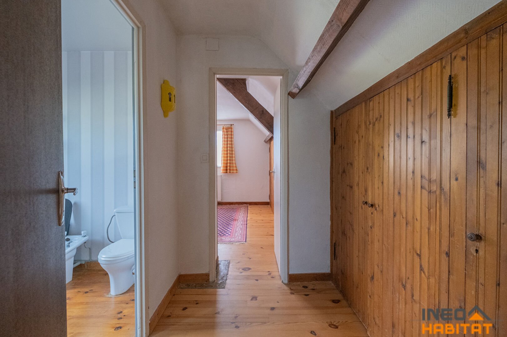 A l'étage, une grande mezzanine idéal pour un espace bureau et détente dessert une chambres avec point d'eau et une seconde avec espace dressing, placard et salle de bains attenante avec WC intégré.