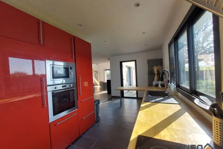 INEO HABITAT AXE RENNES SAINT MALO. TINTENIAC, dans un hameau, au calme, superbe contemporaine de 2015 d'environ 166m² habitables offrant volumes et luminosité.
