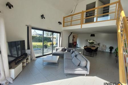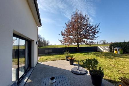 INEO HABITAT AXE RENNES SAINT MALO. TINTENIAC, dans un hameau, au calme, superbe contemporaine de 2015 d'environ 166m² habitables offrant volumes et luminosité.