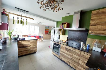Au rez-de-chaussée : un entrée, un grand séjour salon lumineux ouvert sur cuisine aménagée équipée, un cellier, un bureau, une chambre avec salle d'eau et wc privatifs avec accès extérieur indépendant idéale pour activité chambre d'hôte ou activité libérale.