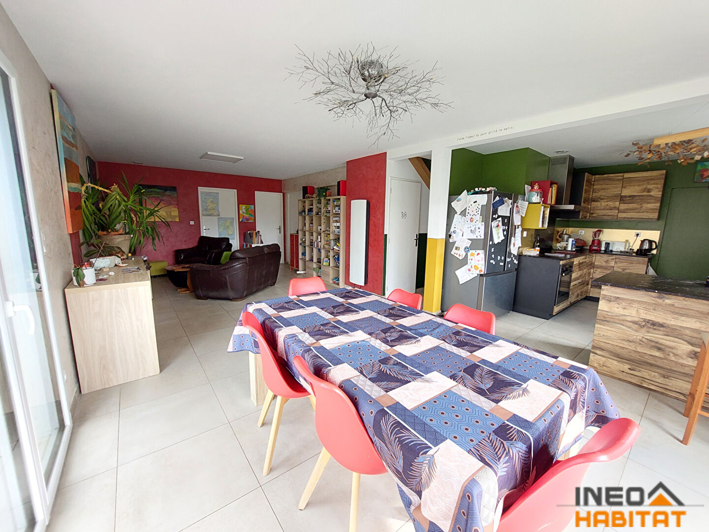 Au rez-de-chaussée : un entrée, un grand séjour salon lumineux ouvert sur cuisine aménagée équipée, un cellier, un bureau, une chambre avec salle d'eau et wc privatifs avec accès extérieur indépendant idéale pour activité chambre d'hôte ou activité libérale.