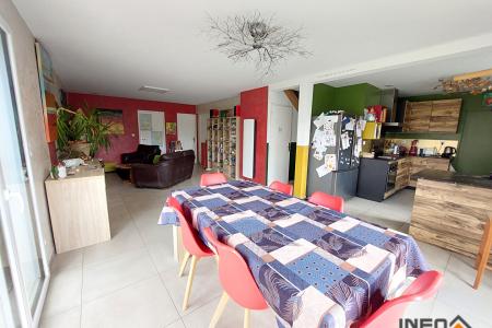 Au rez-de-chaussée : un entrée, un grand séjour salon lumineux ouvert sur cuisine aménagée équipée, un cellier, un bureau, une chambre avec salle d'eau et wc privatifs avec accès extérieur indépendant idéale pour activité chambre d'hôte ou activité libérale.