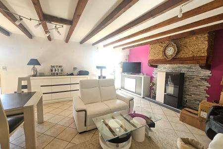 Longère rénovée de 130 m² comprenant une entrée, un salon séjour avec poêle à granulés, une cuisine aménagée et équipée, une salle de jeux, une buanderie, une salle de bains, WC. à l'étage 3 chambres, salle d'eau, WC. Grenier.