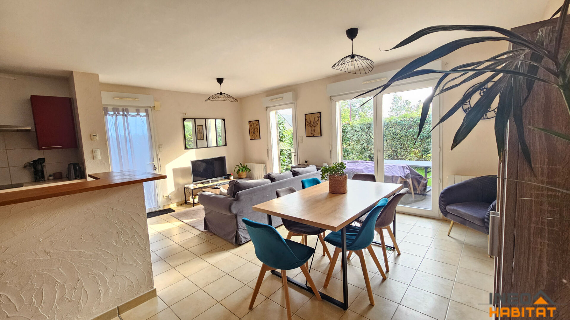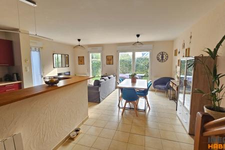 Rez-de-chaussée : cuisine équipée, salon séjour lumineux, deux chambres, salle d'eau et WC.