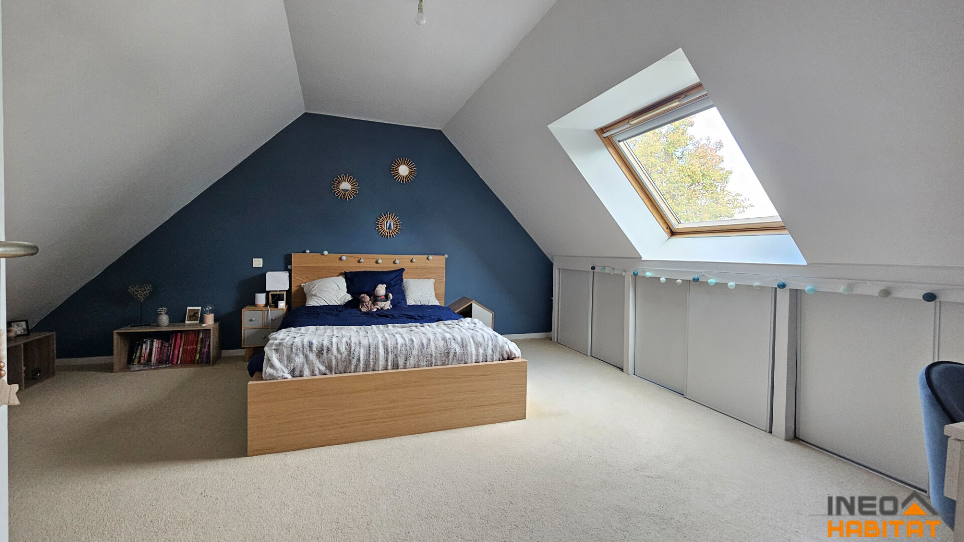 Étage : dégagement, deux grandes chambres (13 et 13,6 m²), salle d'eau avec WC, rangements.