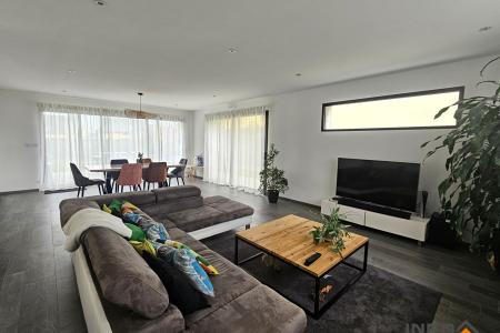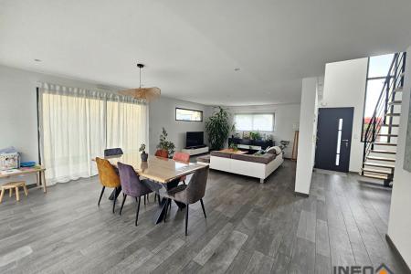 Édifiée en 2017 sur une parcelle de 440 m², cette maison offre de de beaux volumes, des prestations de qualité et une vie de plain-pied très appréciée.