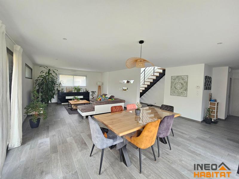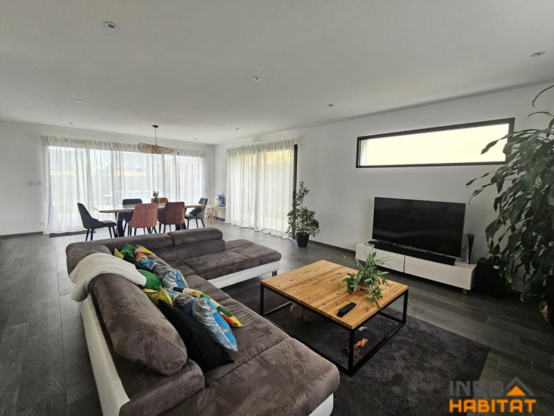 Édifiée en 2017 sur une parcelle de 440 m², cette maison offre de de beaux volumes, des prestations de qualité et une vie de plain-pied très appréciée.