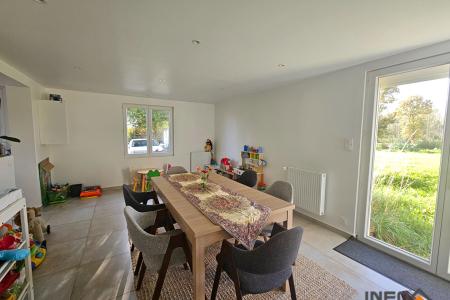Longère de 141m² comprenant entrée, salon avec cheminée, cuisine équipée, salle à manger, WC, Chaufferie.