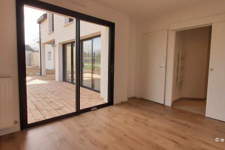Bruz, au calme en impasse, maison de 117 m² de 2022 comprenant au rez de chaussée salon-séjour-cuisine de 46 m² (hotte, plaques induction, four, lave vaisselle), une suite parentale avec salle d'eau attenante, buanderie, WC.