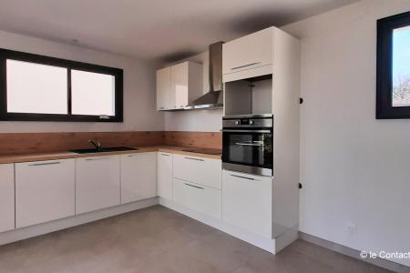Bruz, au calme en impasse, maison de 117 m² de 2022 comprenant au rez de chaussée salon-séjour-cuisine de 46 m² (hotte, plaques induction, four, lave vaisselle), une suite parentale avec salle d'eau attenante, buanderie, WC.