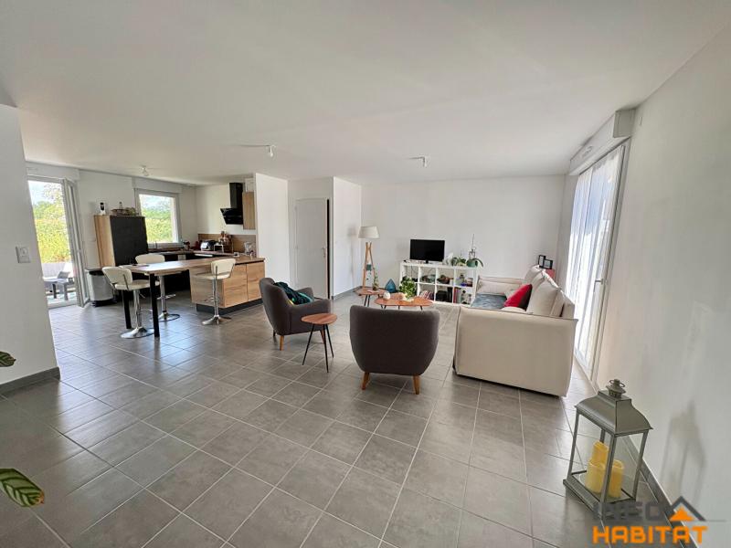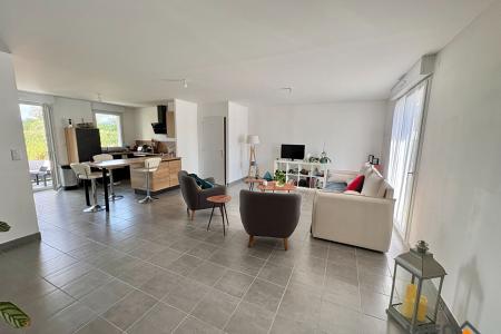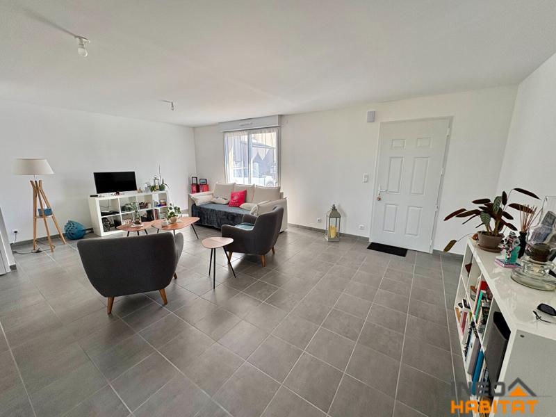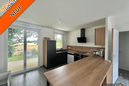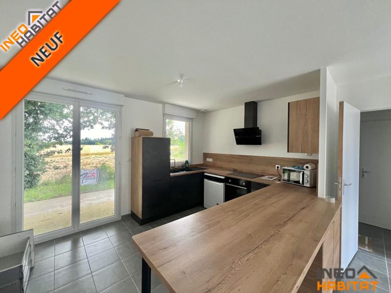 Maison de plain-pied neuve de type 4, comprenant une pièce de vie avec cuisine ouverte aménagée et équipée (four, plaques de cuisson, hotte, lave-vaisselle, frigo), une arrière cuisine. Un dégagement desservant trois chambres et une salle d'eau avec WC. La maison comprend également un garage, une terrasse et un jardin.