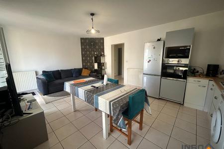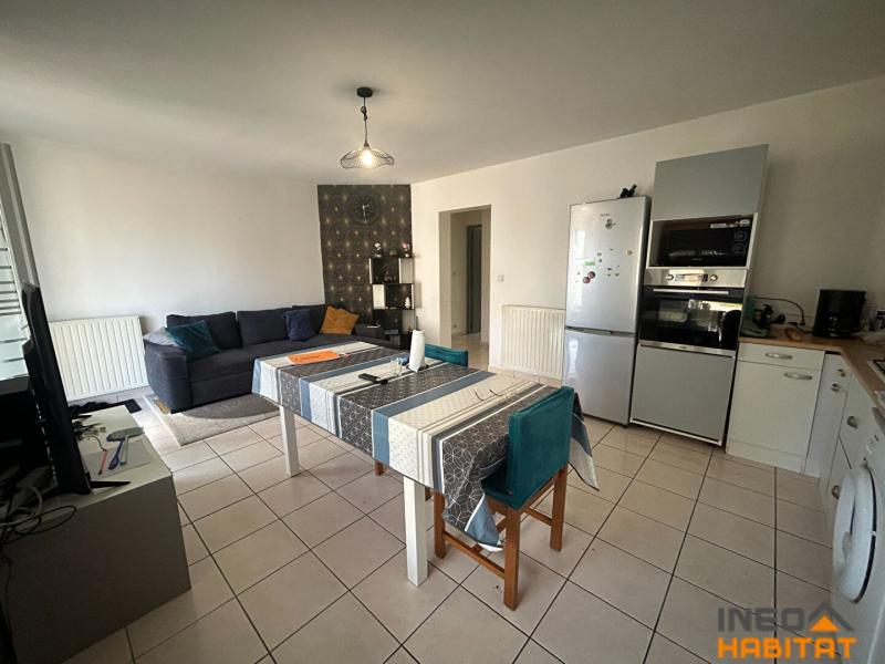 A LOUER Appartement T4 comprenant au rdc : un séjour salon ouvert sur une cuisine aménagée (plaque et hotte) , trois chambres dont une avec placard, une salle d'eau et un WC séparé.