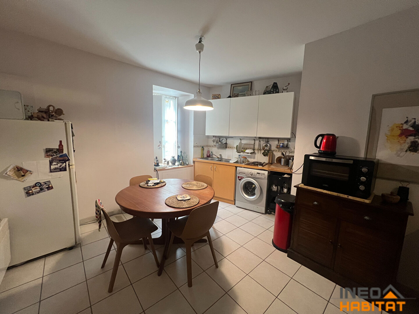 Appartement se situant dans le bourg, comprenant une cuisine aménagée et équipée ( plaque, hotte, frigo, meubles), une salle d'eau, un WC.