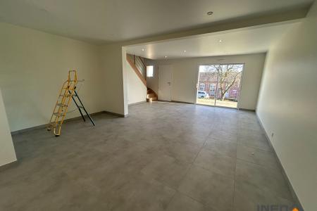 Maison T5 comprenant un séjour, une cuisine ouverte aménagée et équipée (four, plaque, hotte), un WC séparé, une chambre avec un dressing et une salle d'eau privative.