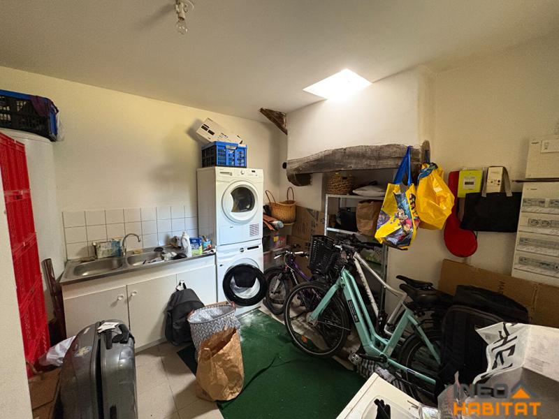 Elle se compose, au rez-de-chaussée, d'une entrée, d'un salon-séjour lumineux, d'une cuisine aménagée et équipée (four, plaque, hotte), d'un bureau, d'une arrière-cuisine, d'une buanderie et d'un WC séparé.