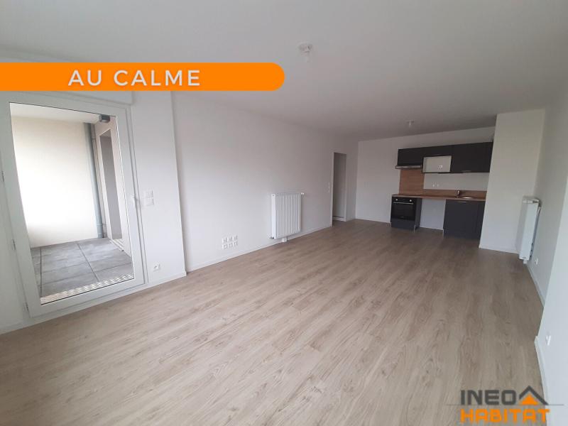 Une entrée avec placard, une cuisine aménagée et équipée (hotte, plaques, four) ouverte sur le séjour exposé Ouest avec accès balcon, deux chambres avec placard, une salle d'eau, WC.