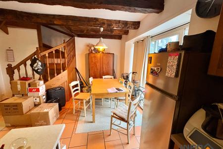 A louer, maison de bourg mitoyenne située en plein centre-bourg de Montreuil-le-Gast. Elle se compose au rez-de-chaussée d'une entrée avec WC , d'un salon-séjour, d'une cuisine aménagée et équipée (plaque de cuisson et hotte). A l'étage, un dégagement dessert deux chambres, un bureau et une salle de bain avec WC. La maison dispose également d'un grenier, d'un jardin et d'une terrasse.
