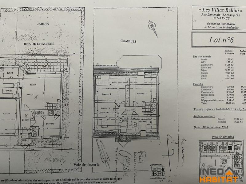 Au calme, maison des années 2000 renovée de type 6 de 122.16m² composée d'une entrée avec placard, d'un WC, d'un salon-séjour avec cuisine ouverte aménagée et équipée (meubles hauts, bas, plan de travail, plaques gaz, hotte, four), une arrière-cuisine, une chambre sur parquet avec placard et salle d'eau privative. A l'étage: Une mezzanine, une salle de bains, un WC, 3 chambres sur parquet dont 2 avec placards. Garage, terrain clos et arboré. Chauffage gaz.