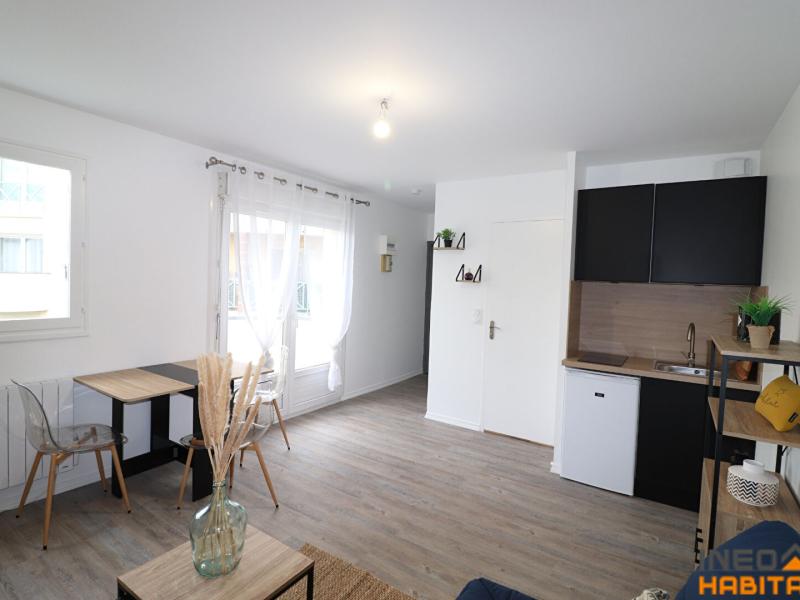 Studio meublé de 22.62 m² comprenant une entrée avec placard, une pièce de vie avec kitchenette aménagée et équipée (frigo, plaque de cuisson) et une salle d'eau avec WC. En annexe, un balcon.