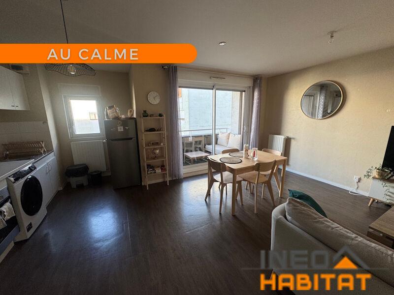 Appartement de type 2 de 47,61 m² comprenant une entrée avec placard, une pièce de vie avec cuisine aménagée et équipée (four, plaque de cuisson et hotte), une chambre avec placard, une salle d'eau et WC séparés. En annexe, un balcon et une place de parking privative en sous-sol.