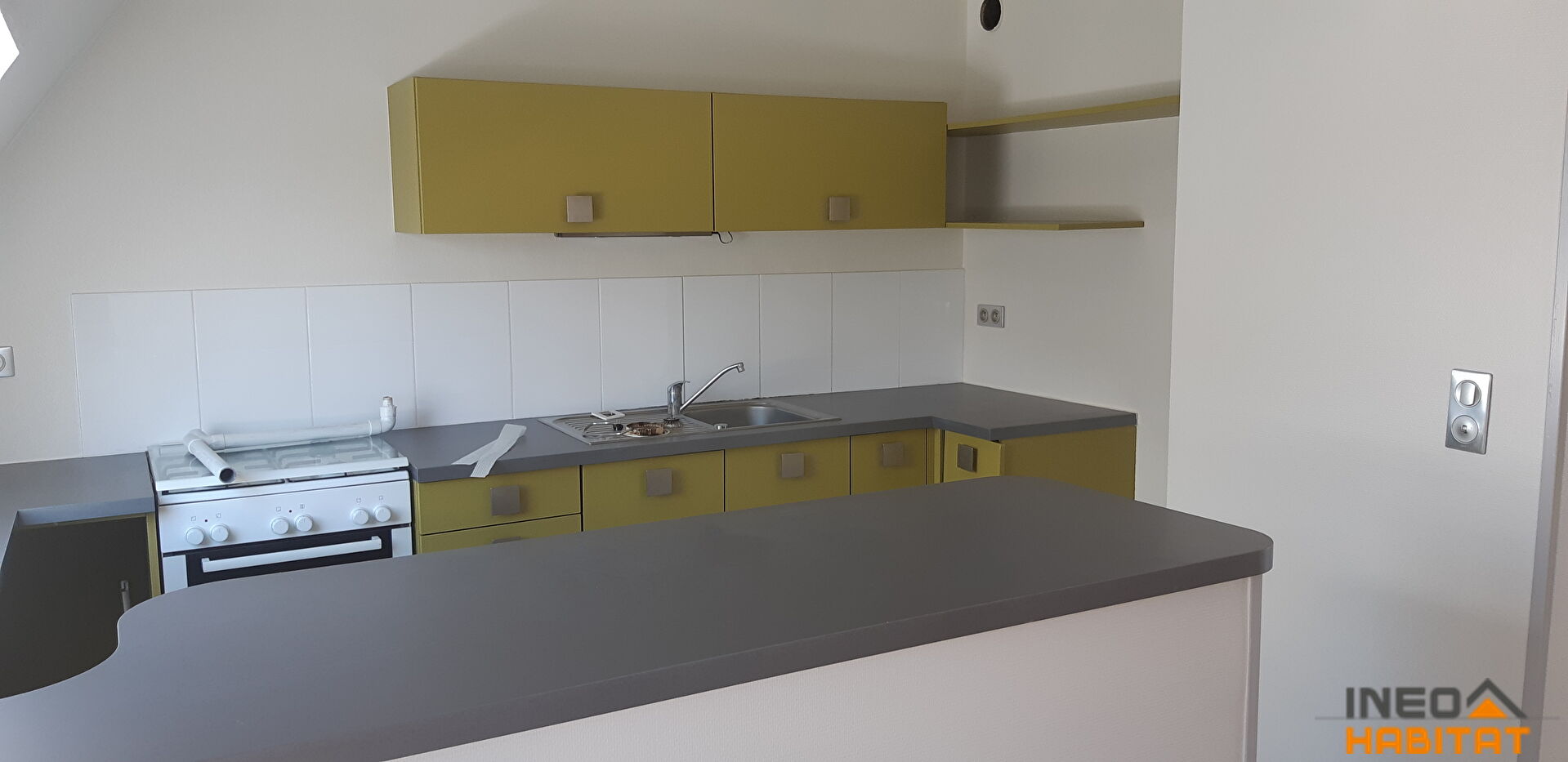 En duplex : une pièce de 7 m² pouvant servir de bureau ou d'espace nuit, un double salon-séjour sur parquet avec cuisine ouverte aménagée et équipée (meubles, gazinière, lave-vaiselle). Balcon avec vue dégagée. 2 places de parking en sous-sol.