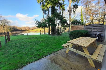 Deux terrasses de 20 m² et 10 m², jardin clos avec accès libre à l'étang.