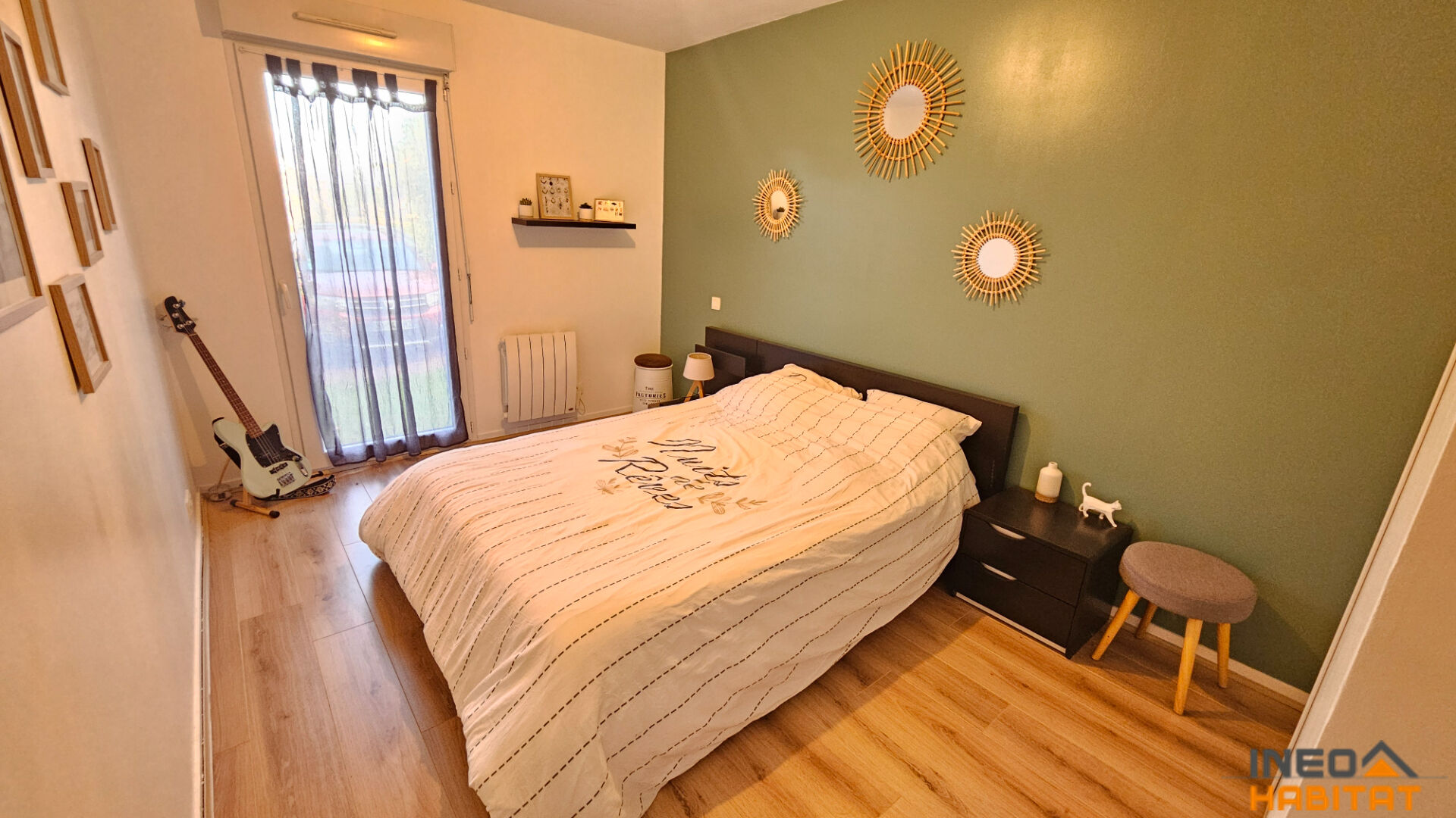 Rez-de-chaussée : cuisine équipée, salon séjour lumineux, deux chambres, salle d'eau et WC.
