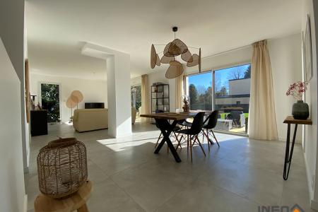 Cette maison, située dans un environnement recherché (hors lotissement, centre-ville à 1 km, nature et campagne à l'arrière), a été construite en 2023 par un constructeur reconnu pour la qualité de ses réalisations.