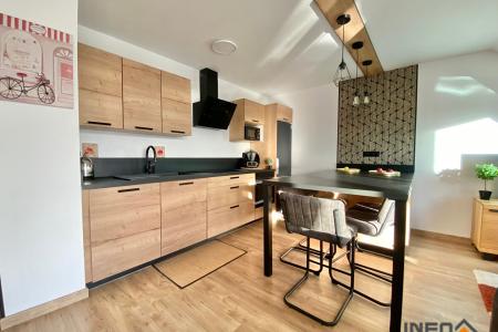La cuisine, aménagée et entièrement équipée, a été rénovée avec goût en 2022 : électroménagers récents, nombreux rangements et ergonomie pensée pour faciliter la vie.
