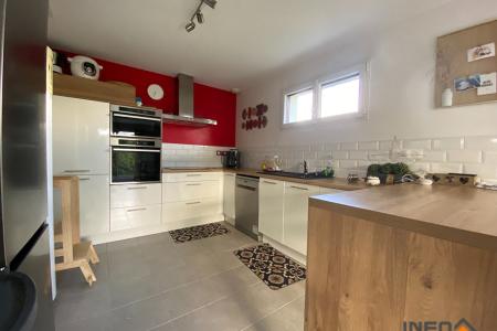 Construite en 2014, elle vous séduira dès l'entrée par son ambiance chaleureuse, son placard intégré et sa verrière ouvrant sur une première pièce de vie de 42 m². Bénéficiant d'une triple exposition (sud, ouest et est), cet espace lumineux comprend un séjour et une cuisine ouverte, aménagée et équipée (four, plaque de cuisson, hotte, lave-vaisselle), idéale pour partager des moments conviviaux en famille.