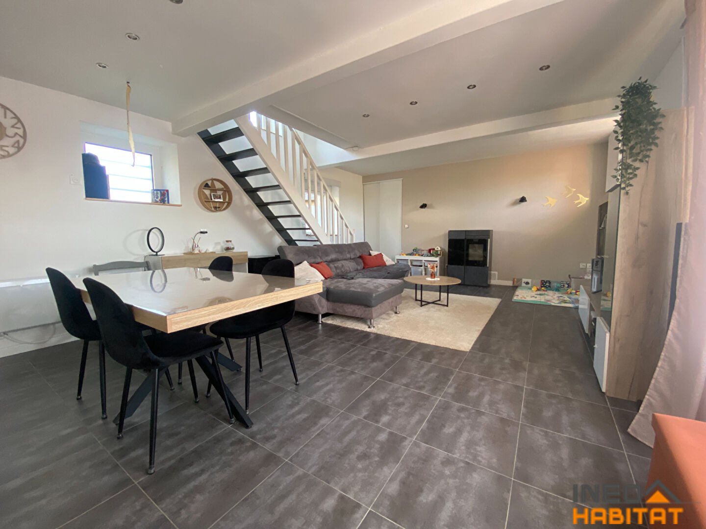 MAISON T5 en campagne de BEDEE, construction pierre entièrement rénovée d'une superficie de 131m² comprenant un salon/séjour avec poêle à granulés, une cuisine ouverte aménagée et équipée (four, plaque, hotte, lave-vaisselle et micro-onde encastré) un espace desservant un second salon pouvant être aménagé en chambre, donnant sur terrasse. Une salle de bains avec WC séparé et une buanderie/arrière cuisine.